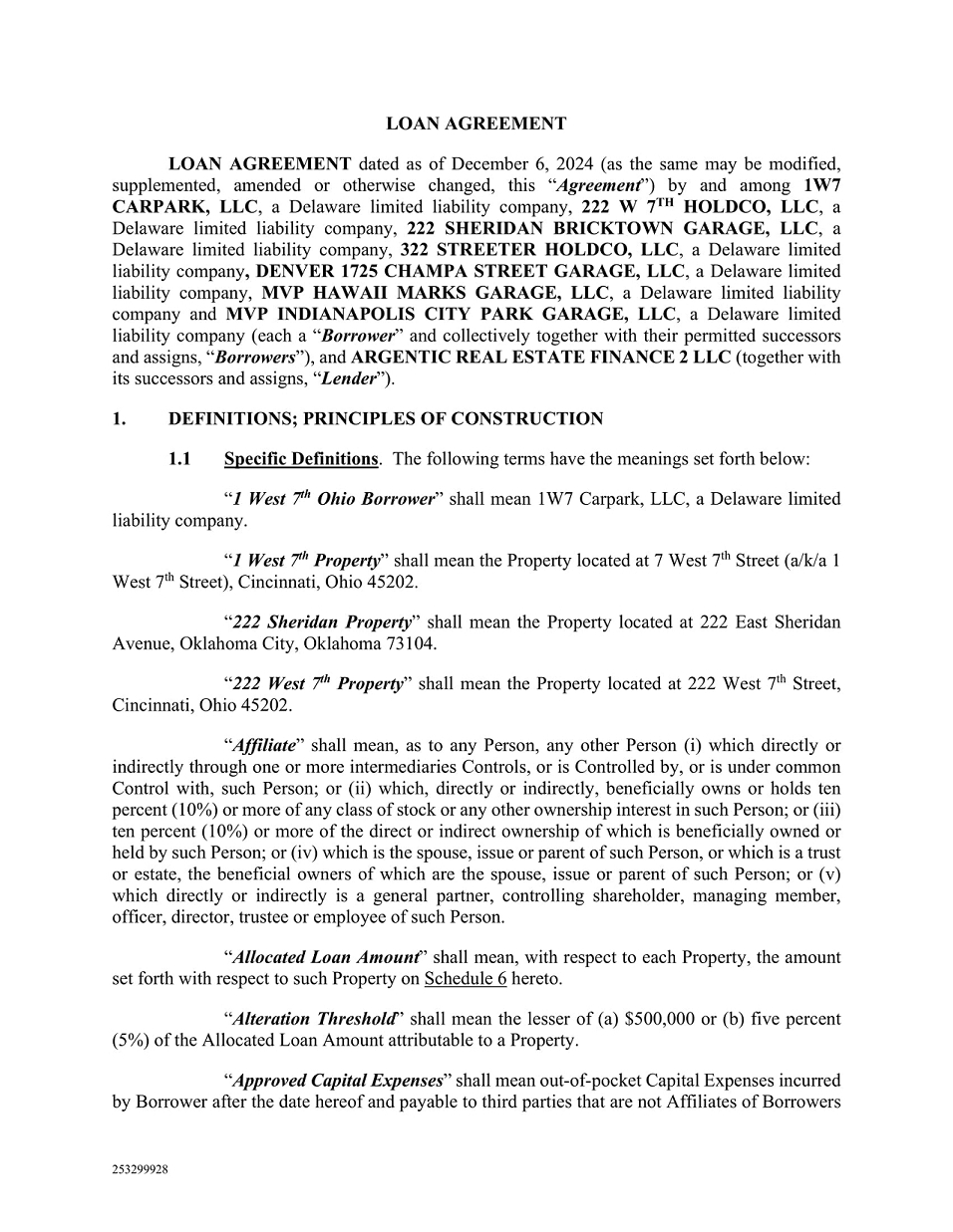 | 10.1* | CMBS Loan Agreement, dated December 6, 2024, by and among the Loan Borrowers party thereto and Argentic. | |