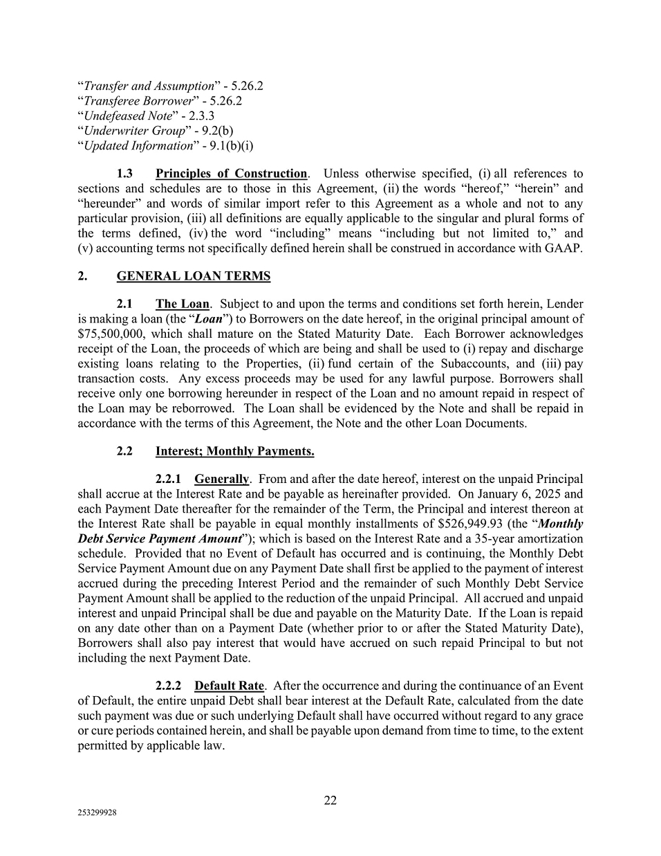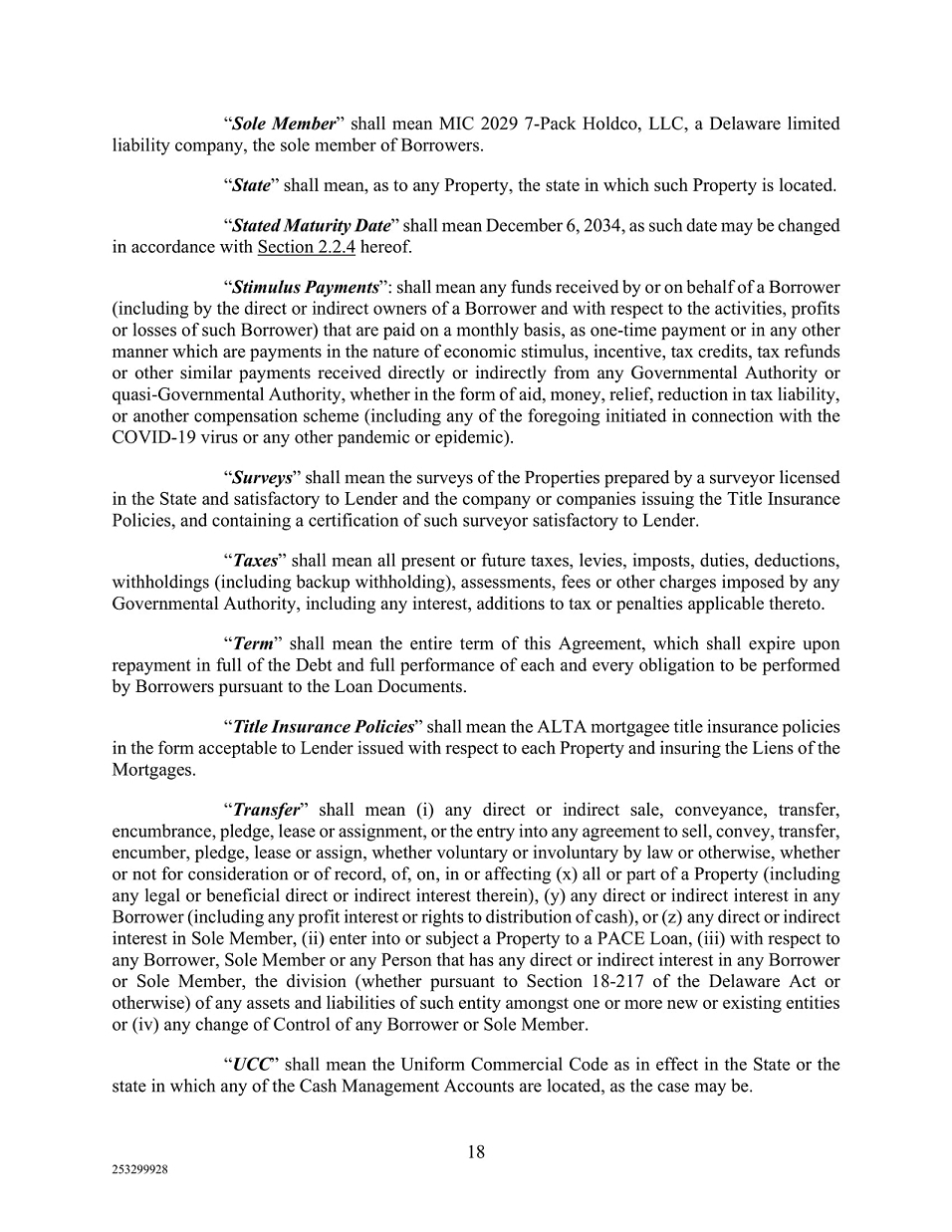 The Company’s obligations under the loan agreement (the “CMBS Loan Agreement”) are secured by a first priority (i) mortgage, (ii) assignment of leases and rents and (iii) security interest in all personal property, including accounts, escrows, and reserves, granted by each of the seven Loan Borrowers. The CMBS Loan has a maturity date of December 6, 2034. Monthly payments of principal and interest are due under the CMBS Loan Agreement with the principal amount based on a 35-year amortization schedule and the full principal amount becoming due and payable on the maturity date.