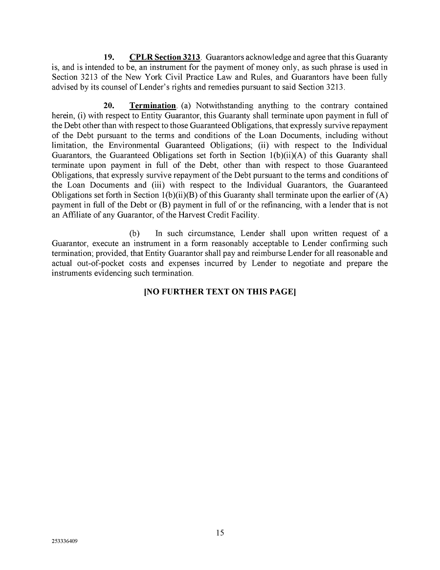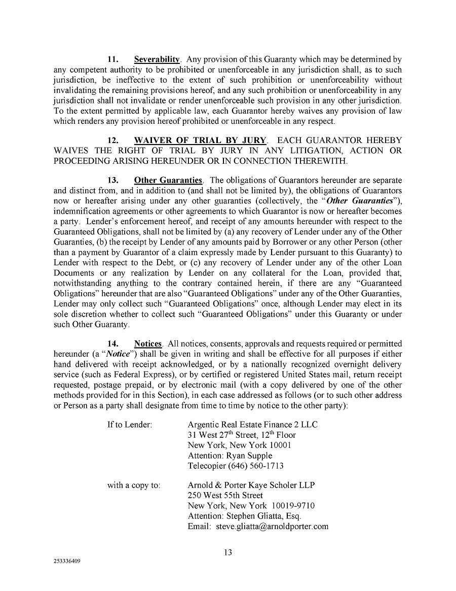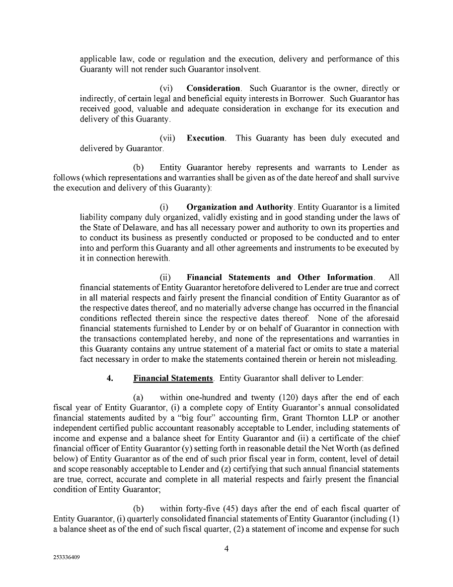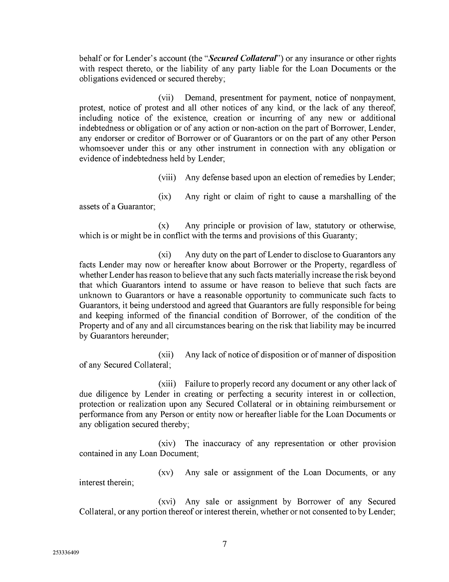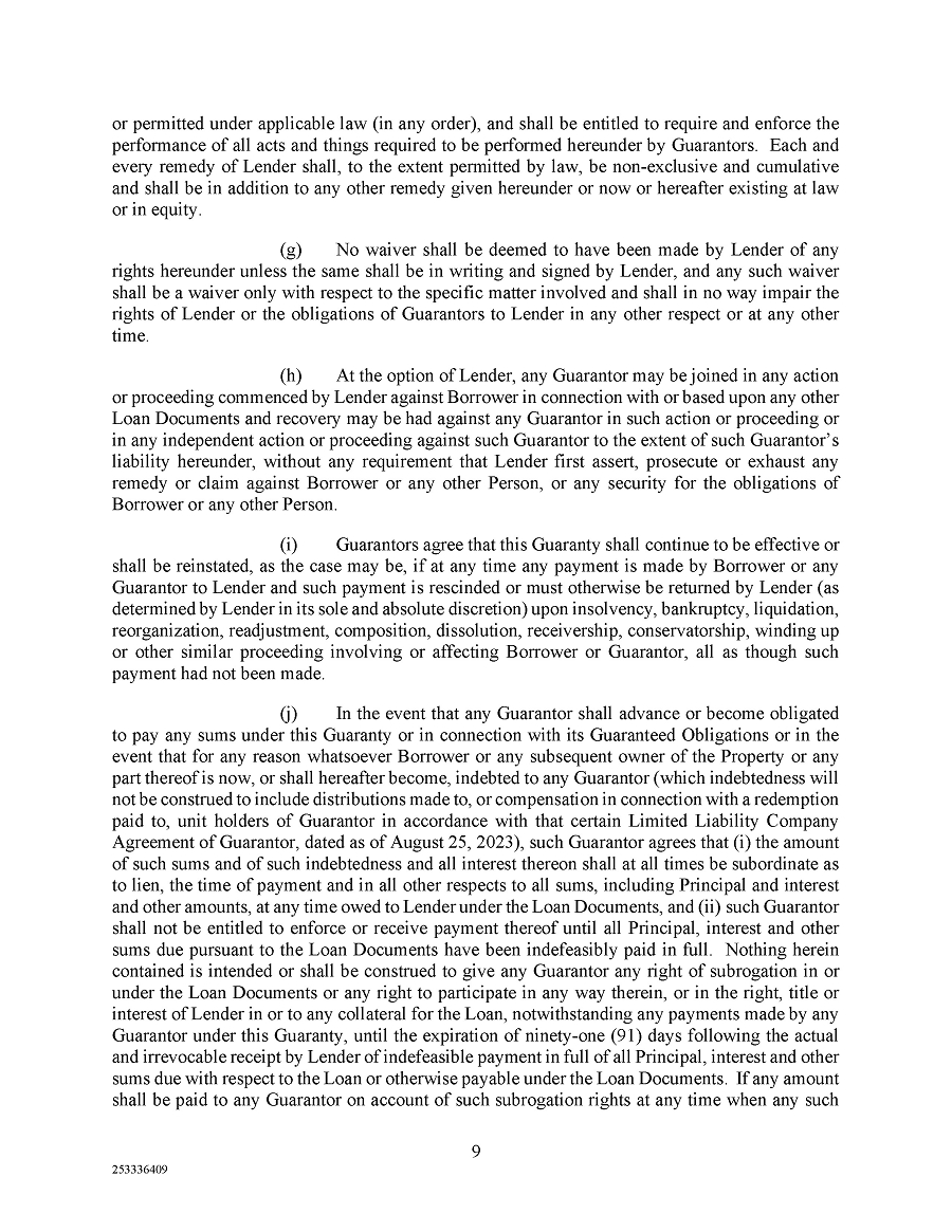 | 10.2 | Guaranty, dated December 6, 2024, by the Operating Company and the other parties thereto in favor of Argentic. | |