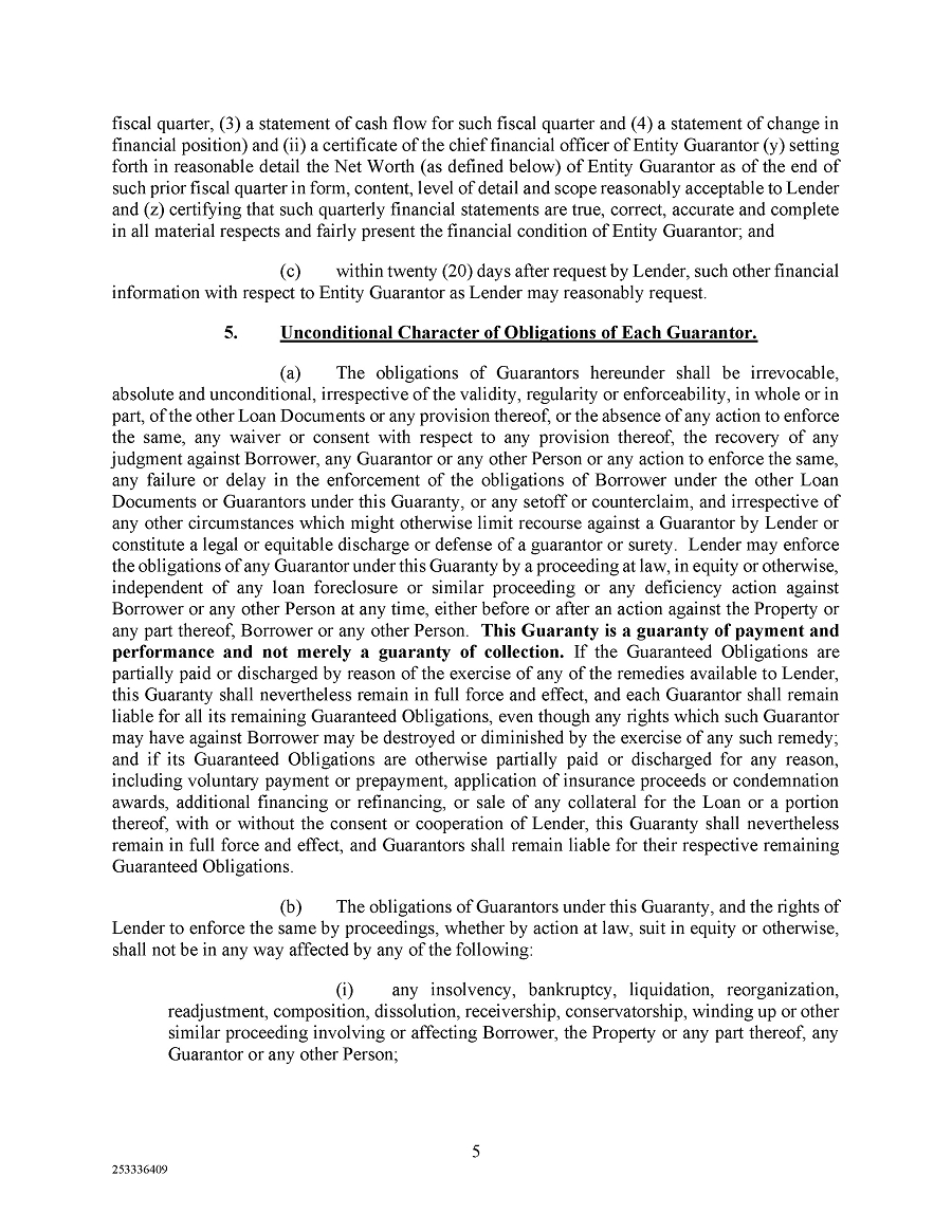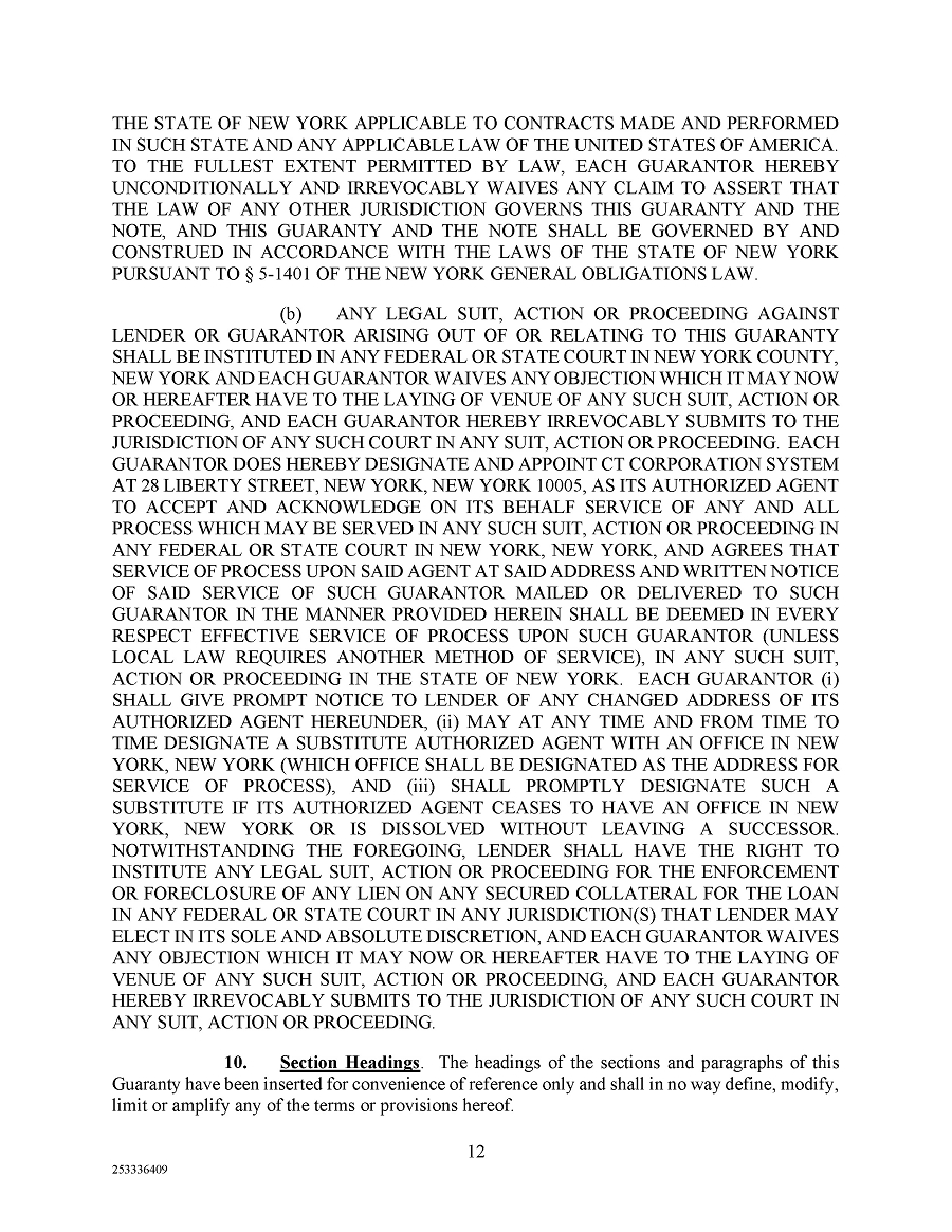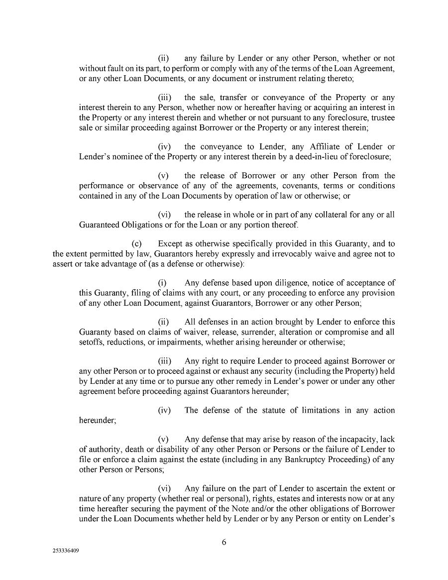 The foregoing description of the CMBS Loan Agreement and the Guaranty is a summary only and is qualified in its entirety by reference to the full text of the CMBS Loan Agreement and the Guaranty, copies of which are filed as Exhibit 10.1 and 10.2, respectively, to this Current Report on Form 8-K and incorporated herein by reference.